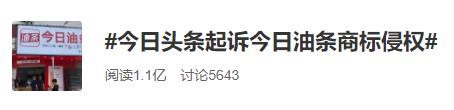 侧面的灯箱广告,像不像是当初卫龙辣条模仿Apple的痕迹?这文案“借用”的“恰到好处”,“今日造”充满了一个油条该有的“新鲜”,此处有掌声!万万没想到,今日油条不仅有今日,还有明日油条、明日豆浆、今日豆浆、今日豆花、今日面条、饼多多、快手抓饼等商标。看来,今日油条的老板非常有“商标意识”,而且决心要把“山寨”进行到底了。对于这波“傍大款”的做法,油条店法人张新亚称,大公司今日头条起诉卖油条的小公司今日油条,这令他不解。“我天天都刷今日头条APP,是头条的忠实用户,喜欢它的风格,爱看上面的新闻。开油条店时,就找人这样设计了,没想到被告侵权了。要是判我输,我只好面对。”今日油条本来就是网红早餐店,这波被告,让它再次火出圈!网友们对此看法不一。有网友表示,小商家跨界蹭个热度,有利于市场繁荣;小小油条店,不能放过吗?也有网友提出,大公司花了几十上百万设计出来的商标,转头就被抄过去,这种行为不被制止,将会有更多山寨。这样看来,拼多多、快手是不是也拿着刀在赶来得路上了?